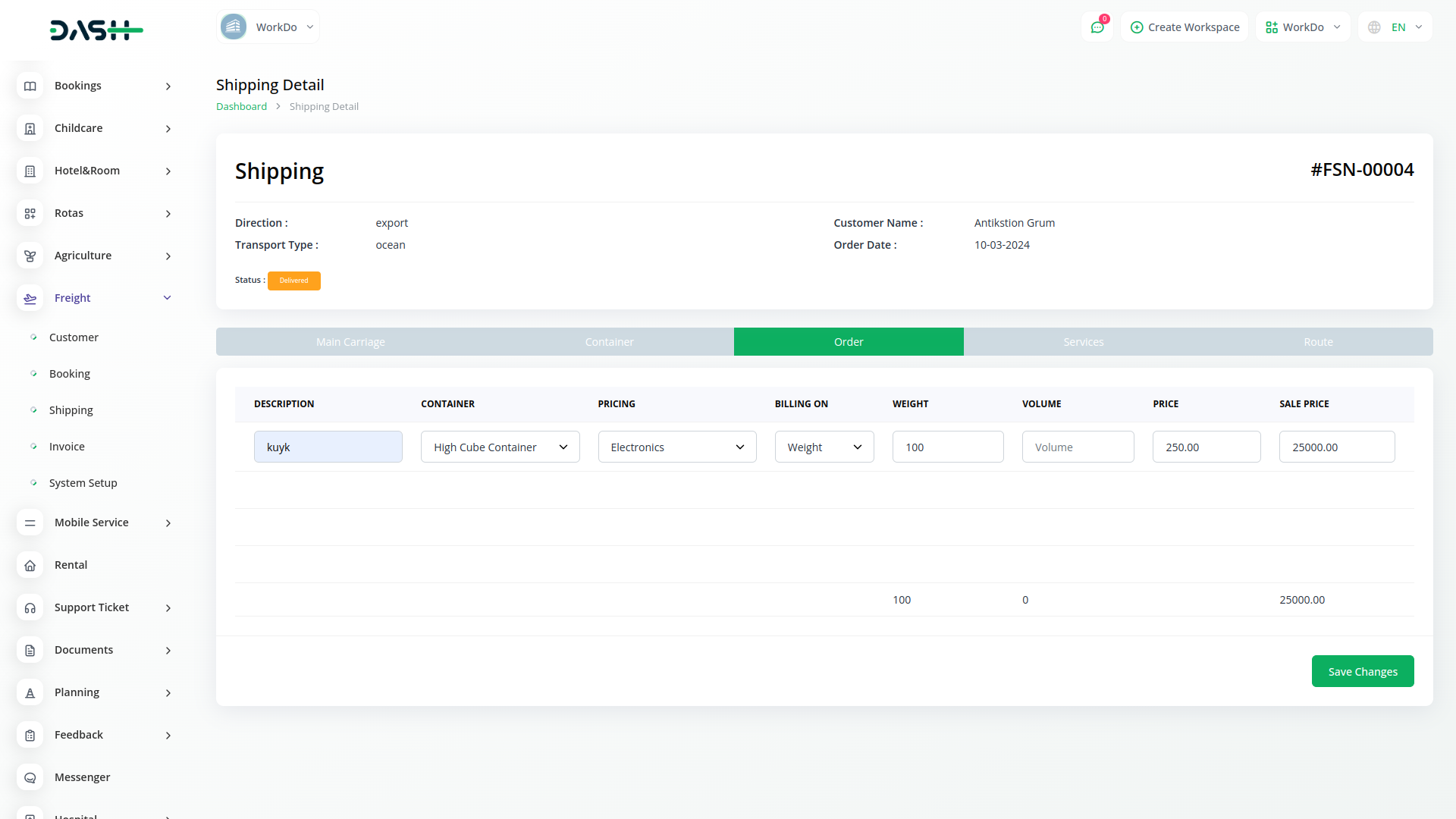 Dash SaaS Freight Management Integration revolutionizes the backend management of logistics operations. Once customers complete their booking process on the front end, you gain immediate access to a suite of powerful tools for efficient freight management. From setting competitive prices to configuring containers and selecting tailored services, the platform empowers you to fine-tune every aspect of your logistics operations according to your unique requirements and preferences.