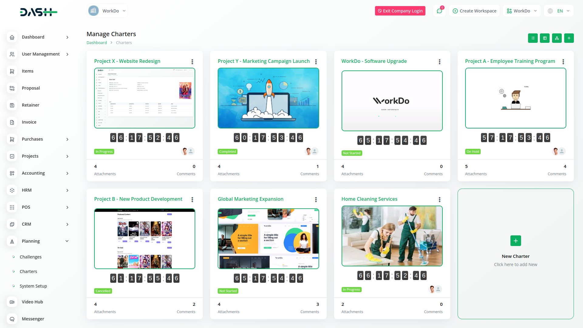 The Planning Module of Dash SaaS offers a centralized hub for efficiently managing challenges and charters. Gone are the days of juggling multiple documents and struggling to keep track of progress. With the Planning Module, you can easily create, update, and monitor your challenges and charters in one intuitive platform. From defining objectives to tracking milestones, our module empowers you to stay organized and focused on achieving your goals.