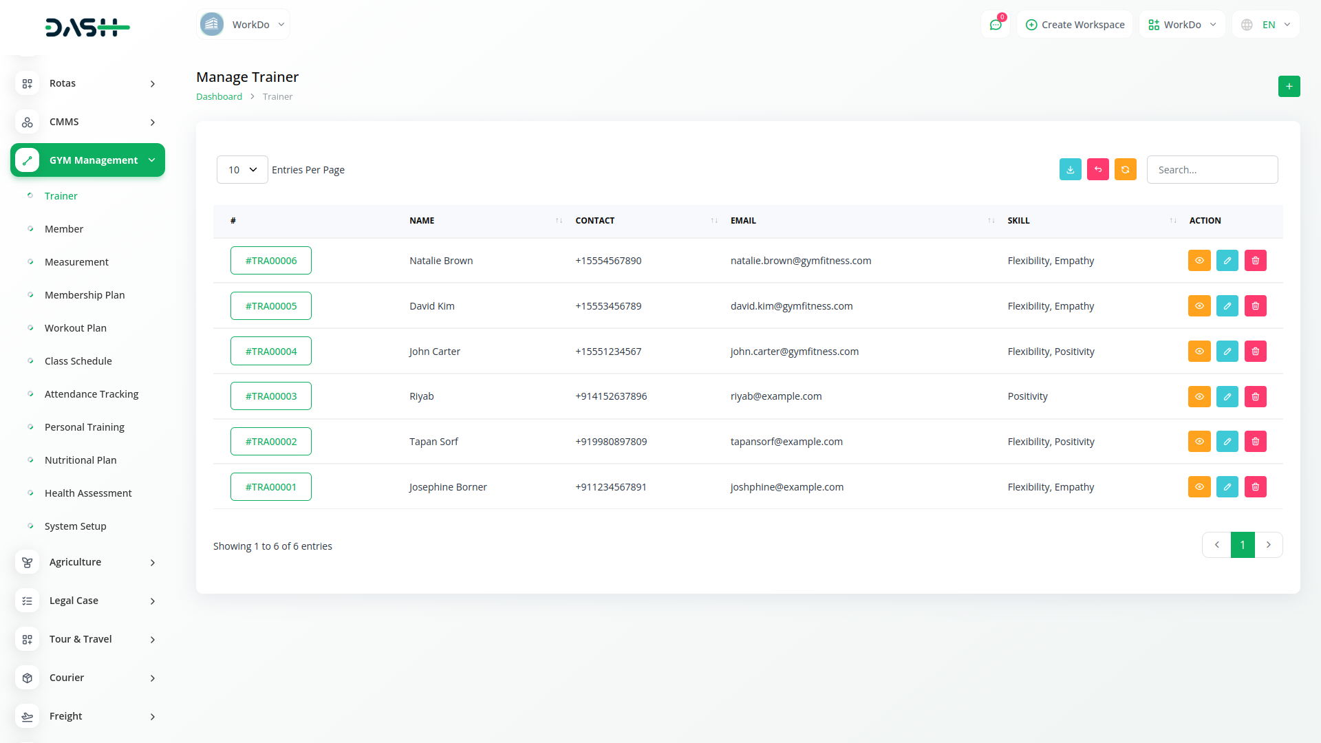 Your trainers are the heroes of your fitness journey, and Dash SaaS GYM Module lets you keep them in check. Easily see who is training, know their skills, and make sure every member gets the right guidance. It is like having a superhero team to support your fitness goals!