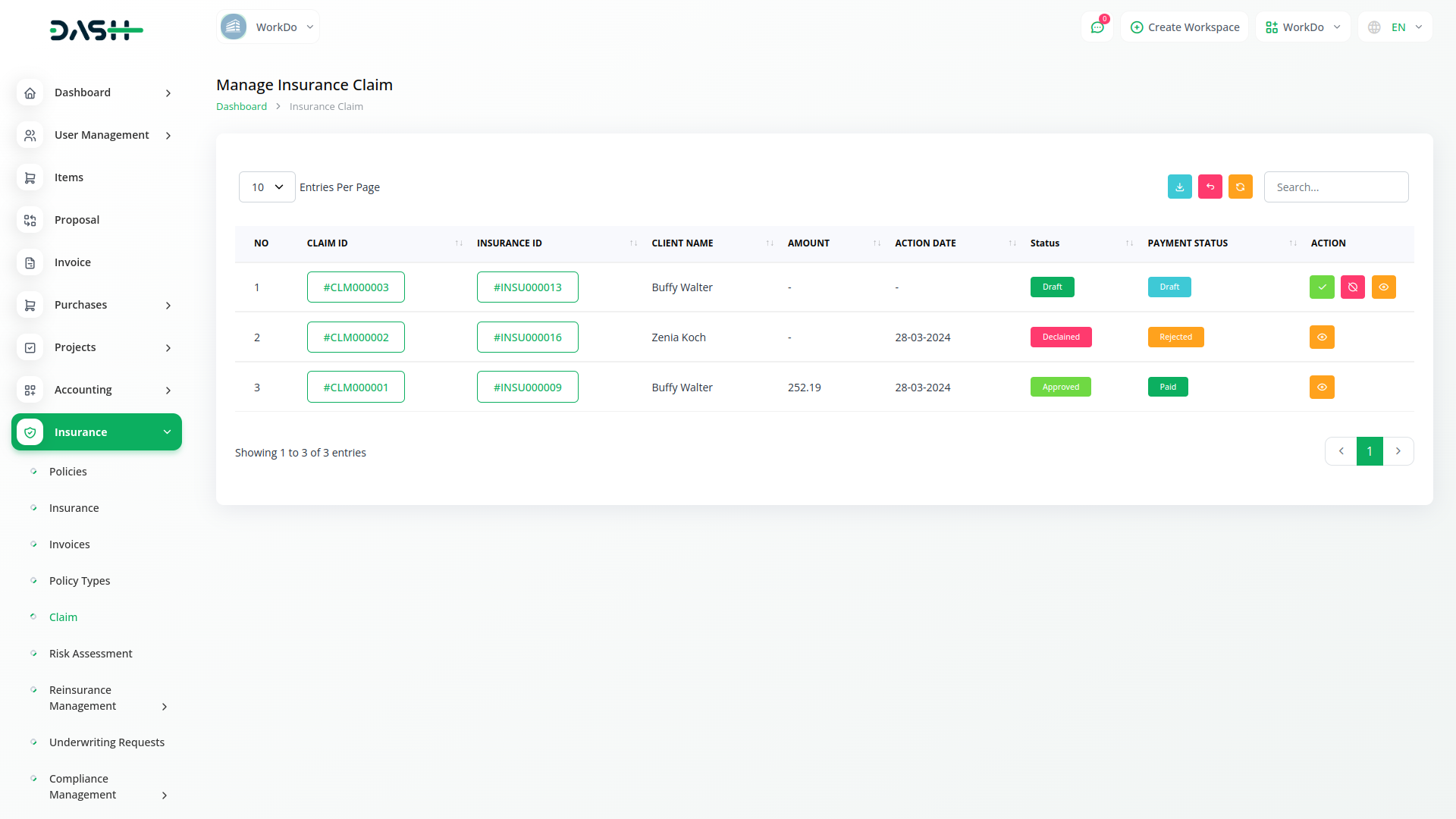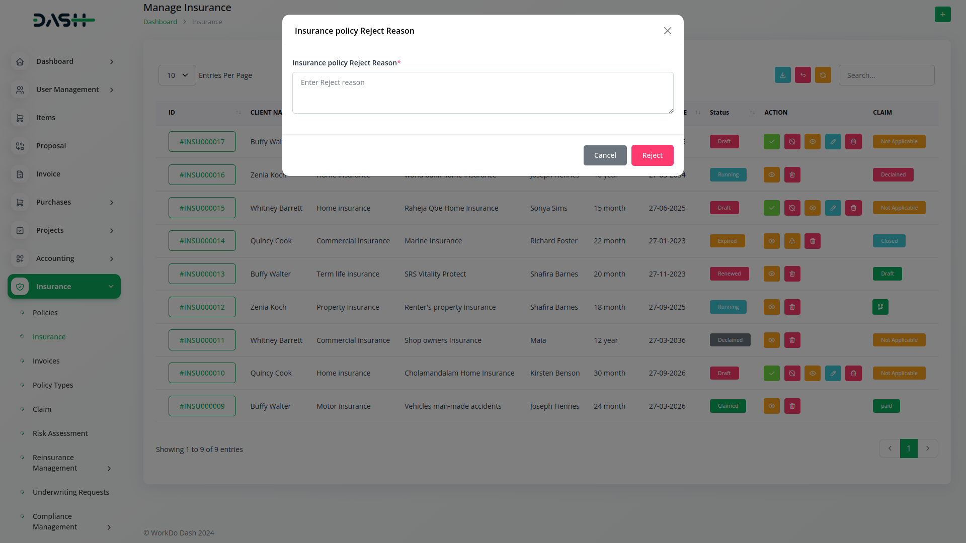 Efficiently manage insurance policies, claims, and client data with Dash SaaS Insurance Management Module.